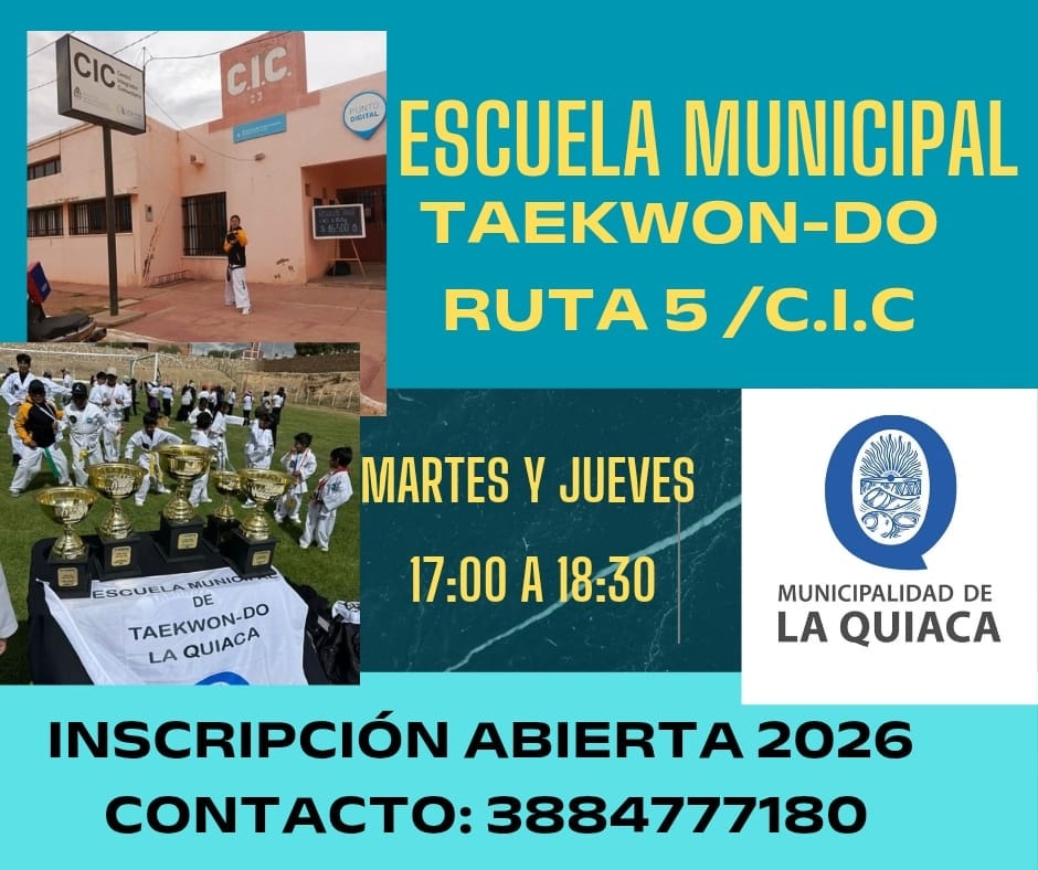 Con inscripciones abiertas, el Taekwon-Do consolida su crecimiento en La Quiaca con clases en el Instituto, escuelas municipales, CIC y Salón Claret. La disciplina, coordinada por el sabon Ariel Corrillo junto a la instructora Luciana Álvarez, se proyecta como una política deportiva de base: mejora el desarrollo psicomotriz, fortalece valores y amplía contención social en niños, jóvenes y adultos.
