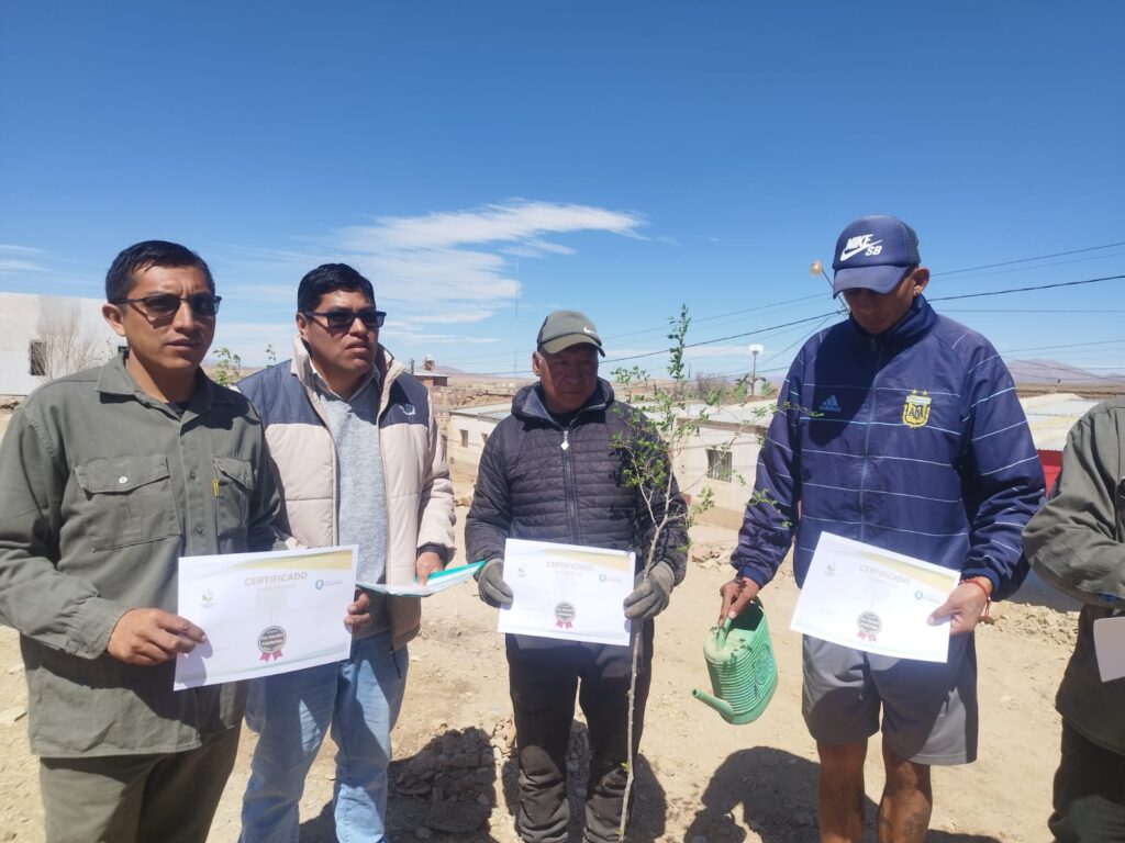 En el marco del Día del Árbol, y como parte del proyecto La Quiaca Verde, la Dirección de Producción y Medio Ambiente, a cargo de Darío Velásquez y el área de Espacios Verdes, a cargo de Omar Cruz; llevaron adelante una actividad especial en Barrio Belén, que consistió en forestación y apadrinamiento de árboles que se plantaron durante la mañana de hoy.