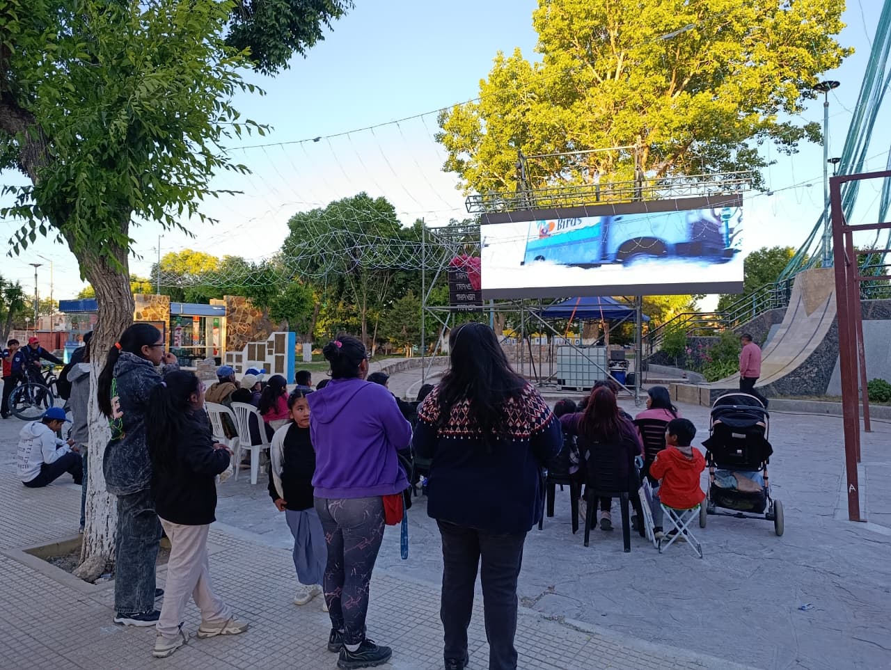Durante la jornada se proyectó Río, la reconocida película animada de Fox, que pudo disfrutarse en pantalla gigante y con un sistema de sonido de alta calidad. Además, la Municipalidad ofreció palomitas de maíz y gaseosas para todos los asistentes, sumando un gesto que hizo aún más amena la tarde.