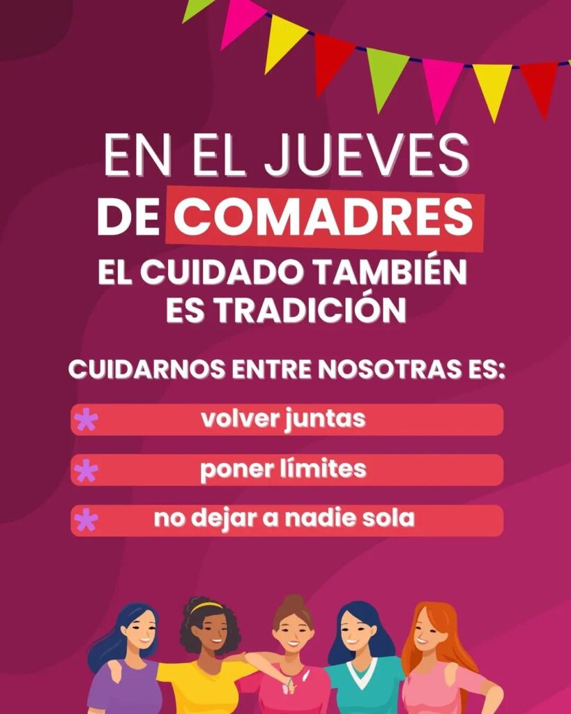 En el marco de los festejos del tradicional Jueves de Comadres, la Secretaría de Desarrollo Social del municipio impulsa la campaña “Comadre cuida a Comadre”, una iniciativa destinada a promover el cuidado mutuo, la prevención y la responsabilidad durante las celebraciones culturales. Así lo informó la secretaria del área, licenciada Analía Mur, quien explicó que la propuesta se desarrolla de manera conjunta con la Dirección de Salud en el Mercado La Lucía.