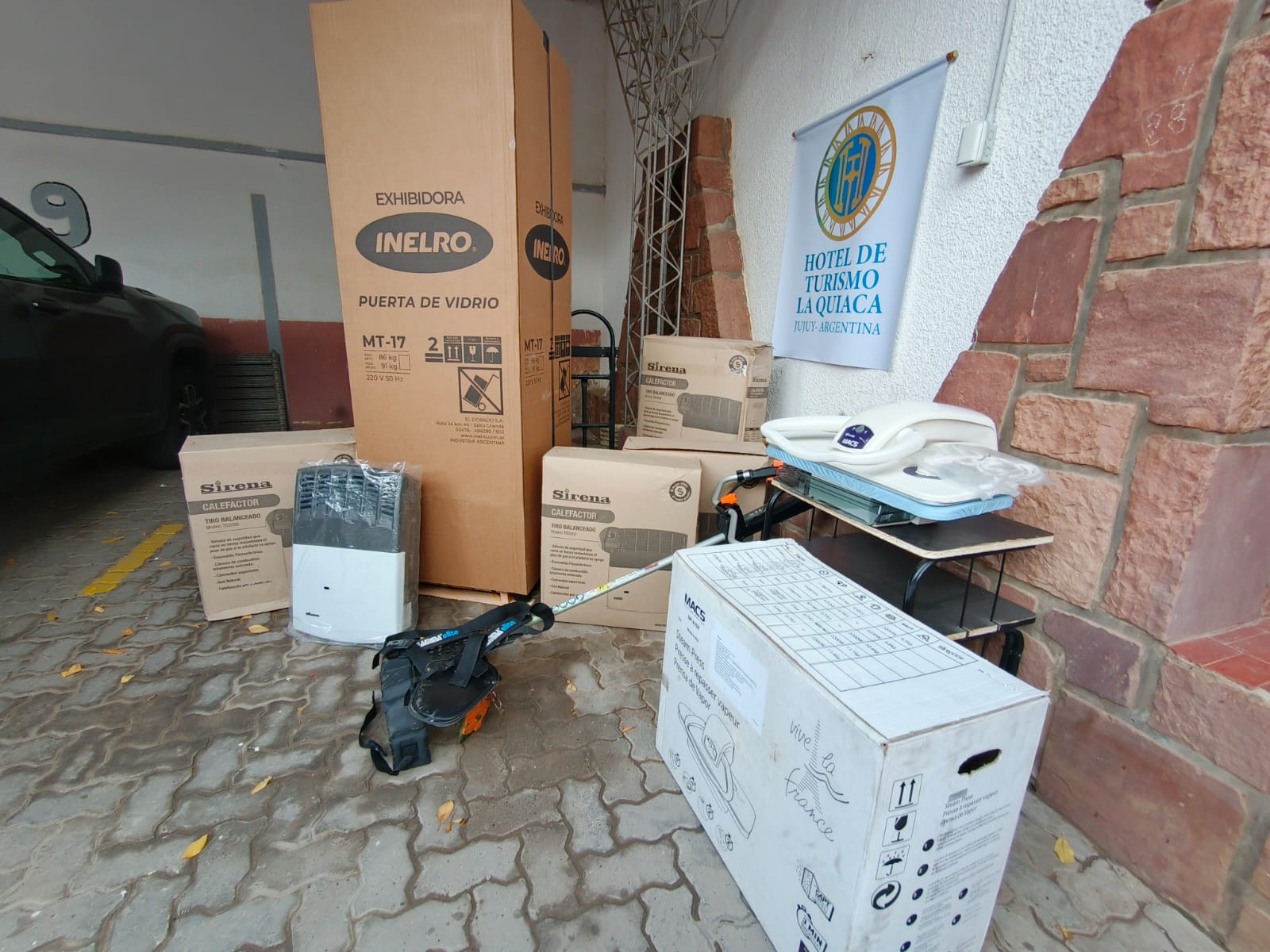 Entre las incorporaciones realizadas se destaca una heladera exhibidora de 90 litros destinada al sector de cocina, particularmente para el área de postres; además de 13 calefactores tiro balanceado, que serán instalados en distintas habitaciones para mejorar la experiencia de los visitantes durante la temporada invernal. A eso se suma una planchadora a vapor para el sector de lavandería, reforzando un servicio que el hotel ya presta a sus huéspedes, y una cortadora de césped para mantenimiento de los espacios del predio.
