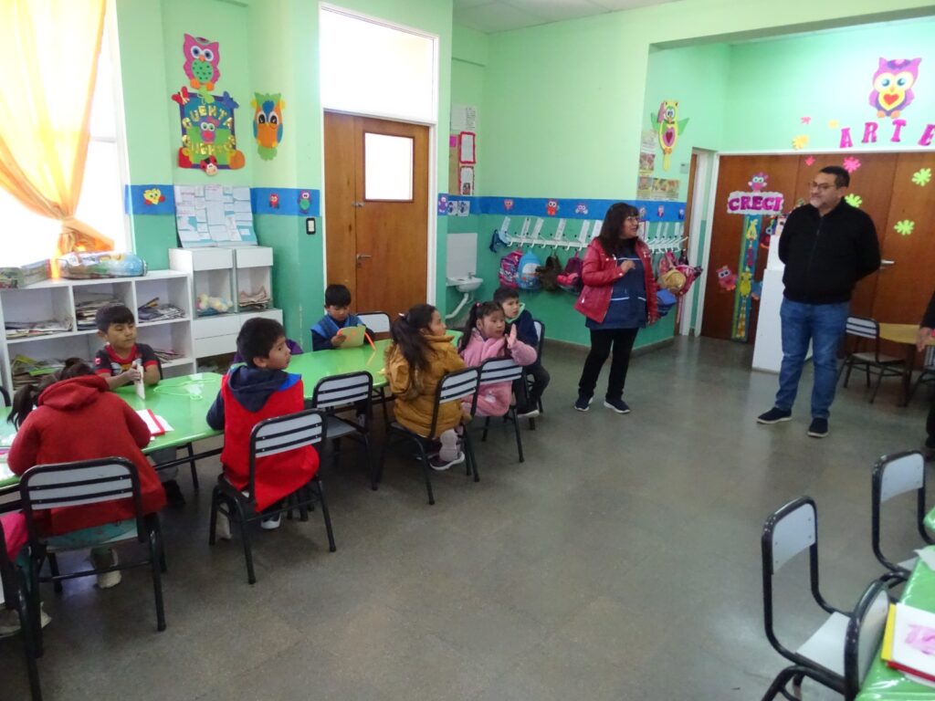 En su camino hacia la obra, el Intendente protagonizó un momento espontáneo al transitar por la vereda de la escuela primaria local. Ante el entusiasmo de los alumnos que colmaron el sector, Velazquez ingresó al establecimiento para recorrer las instalaciones, incluyendo las aulas y el sector del jardín de infantes.Durante el recorrido, el jefe comunal dialogó con el director y el cuerpo docente, quienes plantearon necesidades puntuales para mejorar la calidad educativa.