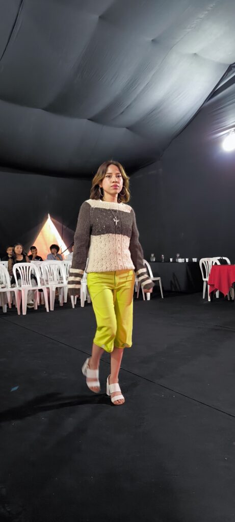 La emprendedora destacó la importancia de haber podido participar en la ExpoJuy y explicó; “Estos son espacios que permiten visibilizar el emprendimiento, se hace mucha prensa, el stand nuestro mostró todo el proceso del tejido, la lana, los elementos con los que teñimos, la maquinita de hilar, fuimos mostrando cómo se hace el hilo. Es otra forma de concientizar y que valoren el trabajo artesanal, porque tenemos el producto en el perchero pero, a veces, no se conoce todo el proceso que llevó su producción. En nuestro stand mostramos todo el proceso y todos los elementos naturales que usamos, esto permite que los visitantes, los que pasan por el stand, puedan valorar y conocer contacto para que luego puedan tener la oportunidad de adquirir algún diseño”, y además explicó: “Además de la exposición de los productos, en el programa de la ExpoJuy, hubo ronda de negocios, una actividad paralela a la Expo, donde se puede identificar a posibles compradores o qué servicios te pueden brindar para mejorar tu emprendimiento. Nosotros pudimos hacer alianzas con servicios de encomienda, por ejemplo…También nos relacionamos con nuevas diseñadoras, que viajan a otros países y quieren llevar nuestros productos como productos identitarios de Jujuy, y pudimos relacionarnos con diseñadoras con las que se abrió la posibilidad de diseñar una pieza en forma compartida, buscando que esas prendas tengan identidad, tanto del artesano como de la diseñadora.”