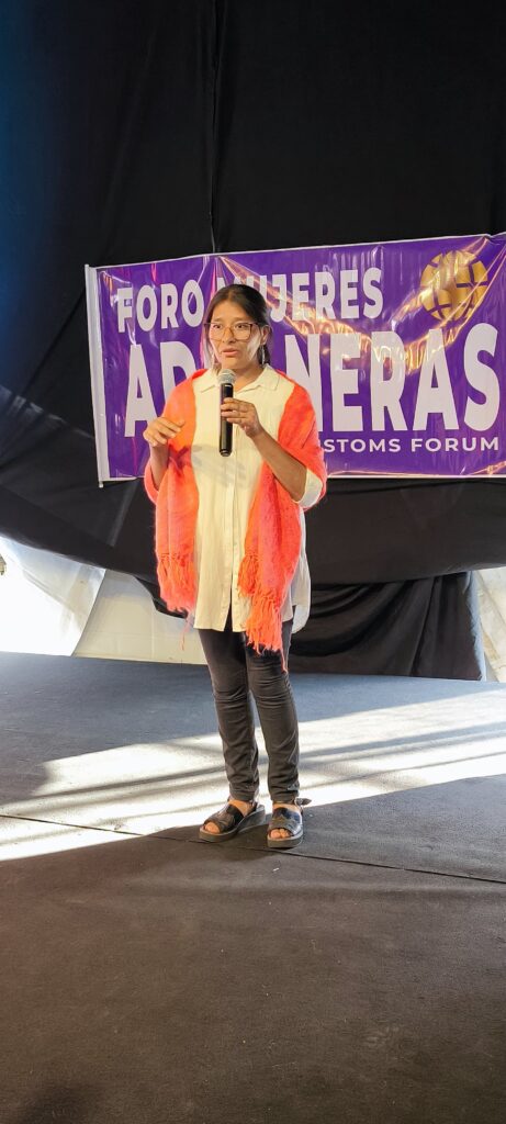 Graciela Gaspar, artesana textil de la Puna, formó parte del stand de la Municipalidad de La Quiaca en la ExpoJuy como emprendedora local e integrante del emprendimiento de tejidos artesanales Kippus.