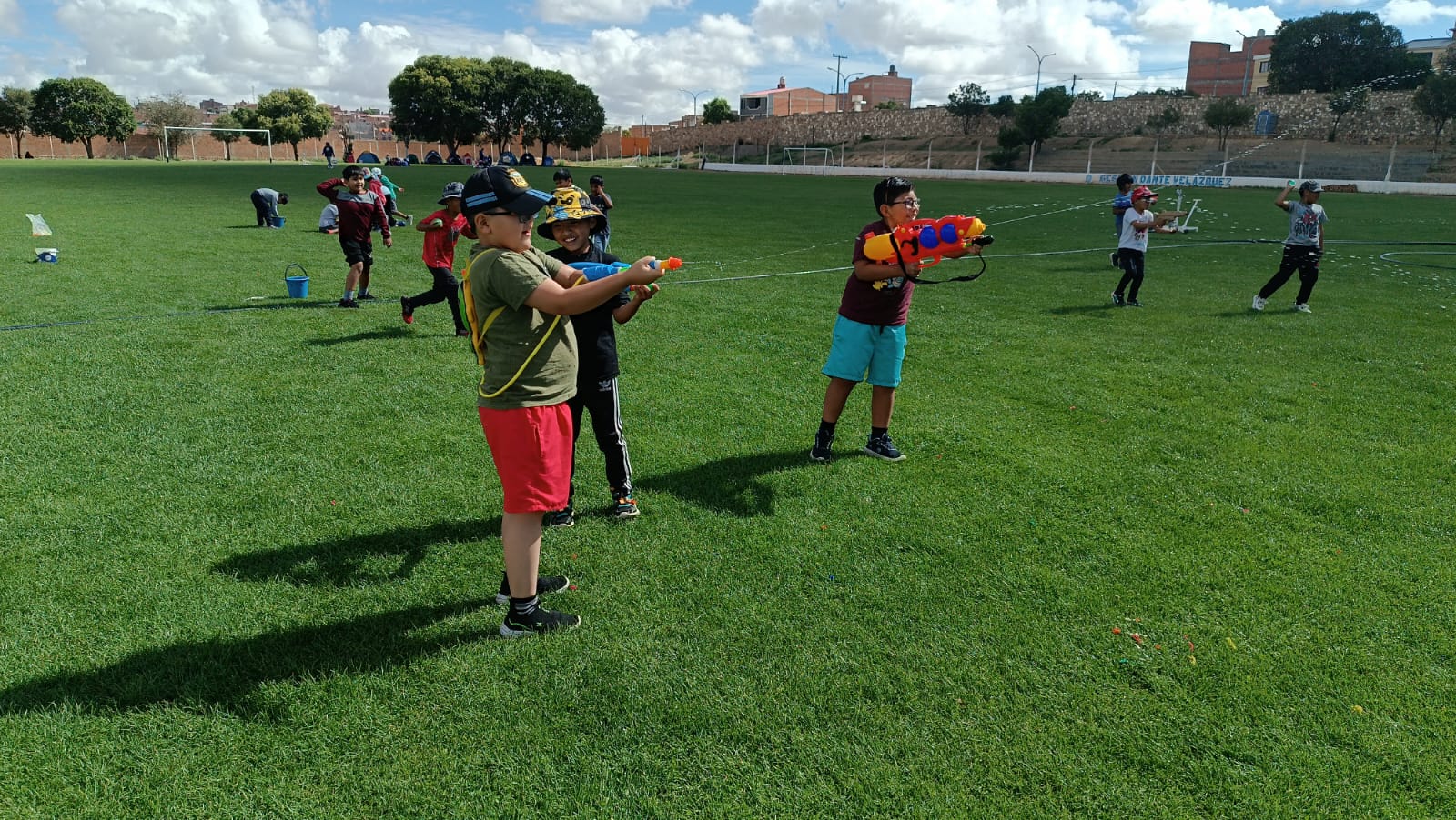 La Colonia de Vacaciones vivió una jornada cargada de alegría y juego con una actividad especialmente pensada para los niños y niñas de 7 y 8 años. Bajo la coordinación del profesor Marcelo Tejerina, los chicos participaron de la denominada “batalla acuática”, una propuesta recreativa que combinó movimiento, integración y mucha diversión.