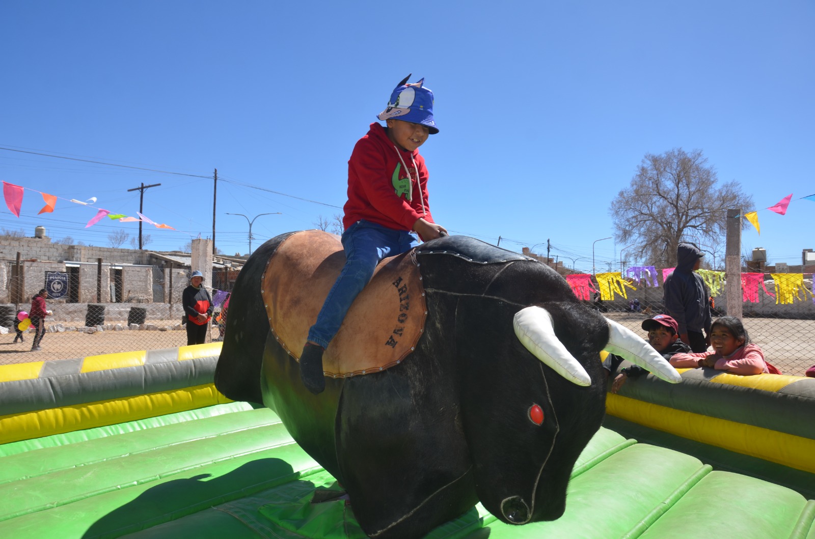 El festejo incluyó shows de payasos, coreografías, la exhibición de la división canes y un gran sorteo de juguetes. Bicicletas, muñecas y autos a control remoto iluminaron los ojos de los ganadores, mientras la tierra que se levantaba con cada baile se unía a la fiesta.La celebración no se limitó al estadio.