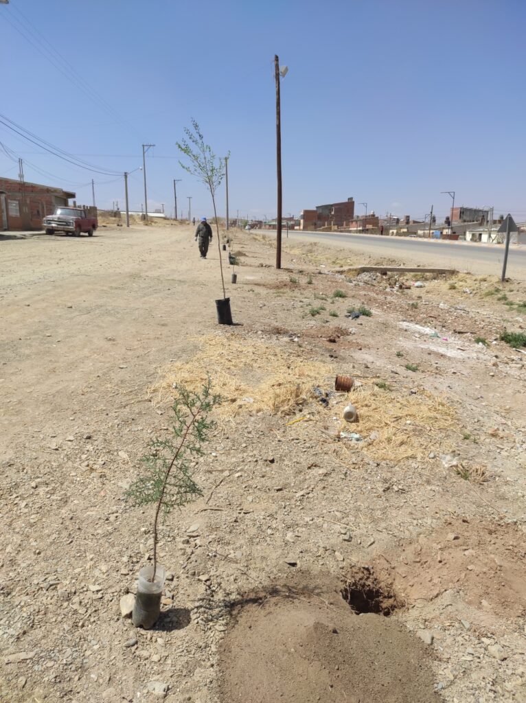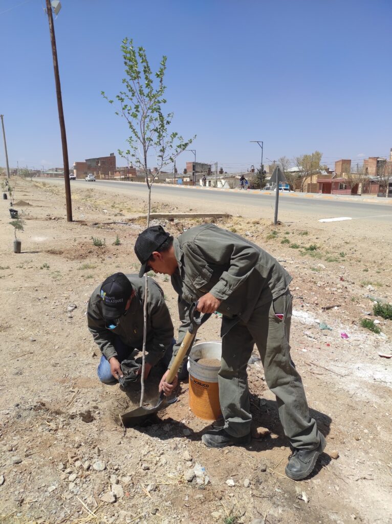 Omar Cruz, encargado de Espacios Verdes, informó: “Desde el día de ayer nos encontramos trabajando con la excavación de pozos en el barrio Lavalle, hasta llegar al C.I.C. Tenemos para forestar entre 50 y 60 árboles en este trecho. Vamos a estar cubriendo con distintos tipos de ejemplares como olmos, pinos y molles, para avanzar en poder tener una La Quiaca Verde.”