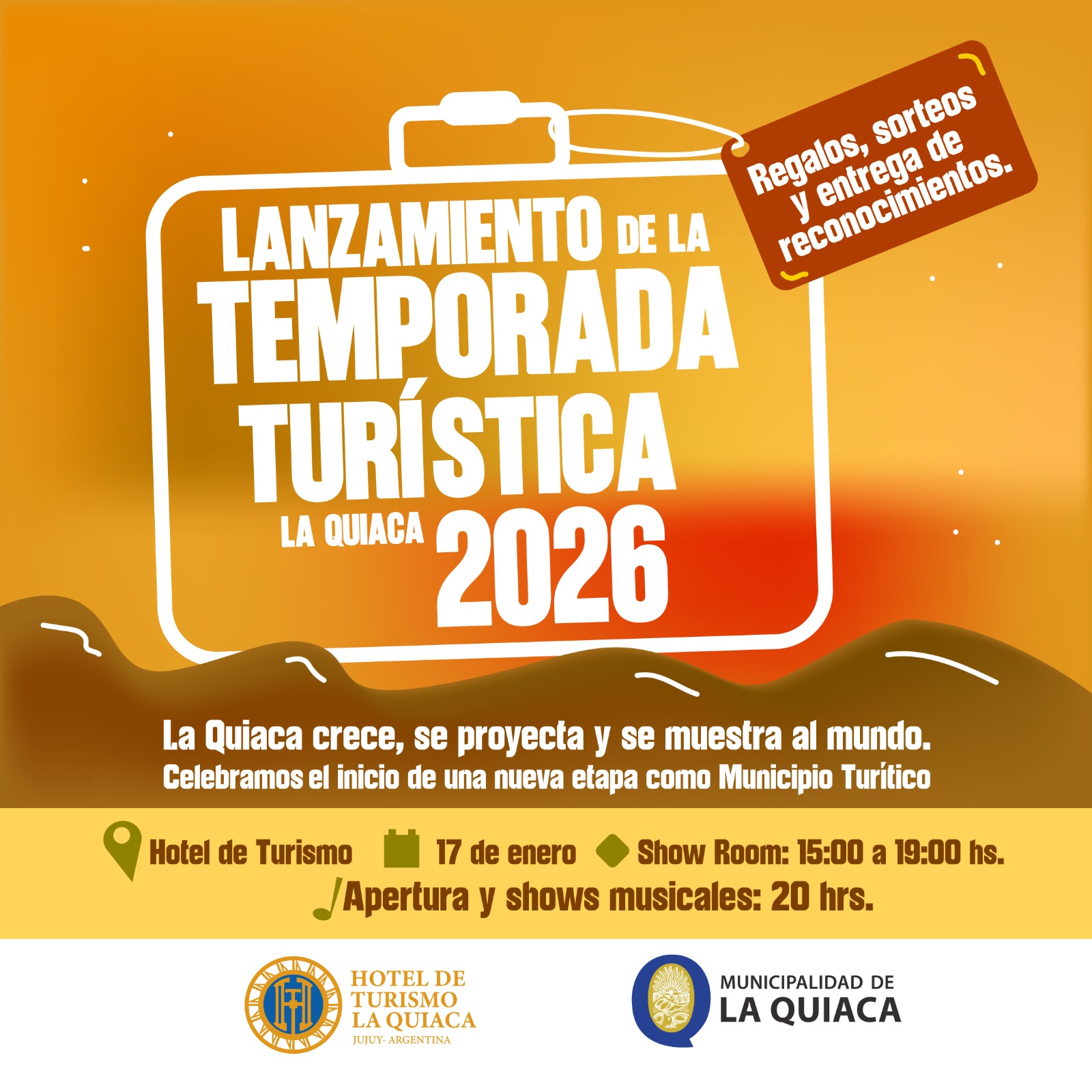 La Quiaca se prepara para dar este sábado un paso clave en su agenda de verano con el lanzamiento oficial de la temporada turística 2026, que se realizará en el Hotel de Turismo de la ciudad. La propuesta, abierta y gratuita, comenzará a partir de las 15:00 horas y combinará identidad cultural, impulso a la economía local y acciones de formación, con el objetivo de recibir visitantes y, al mismo tiempo, generar oportunidades concretas para los propios quiaqueños.