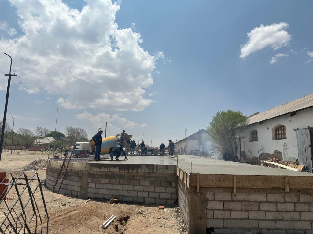 El Secretario de Obras Públicas, Arq. Rubén López, informó: «Se realizó el vaciado de la loza, con viguetas pretensadas, malla, y toda una estructura de columnas y encadenados de hormigón que, de acuerdo a las medidas que teníamos, forma una semicircunferencia de 16 metros de diámetro, además, cuenta con una parte rectangular en la parte de atrás, que tiene 21 metros por 3 metros.»