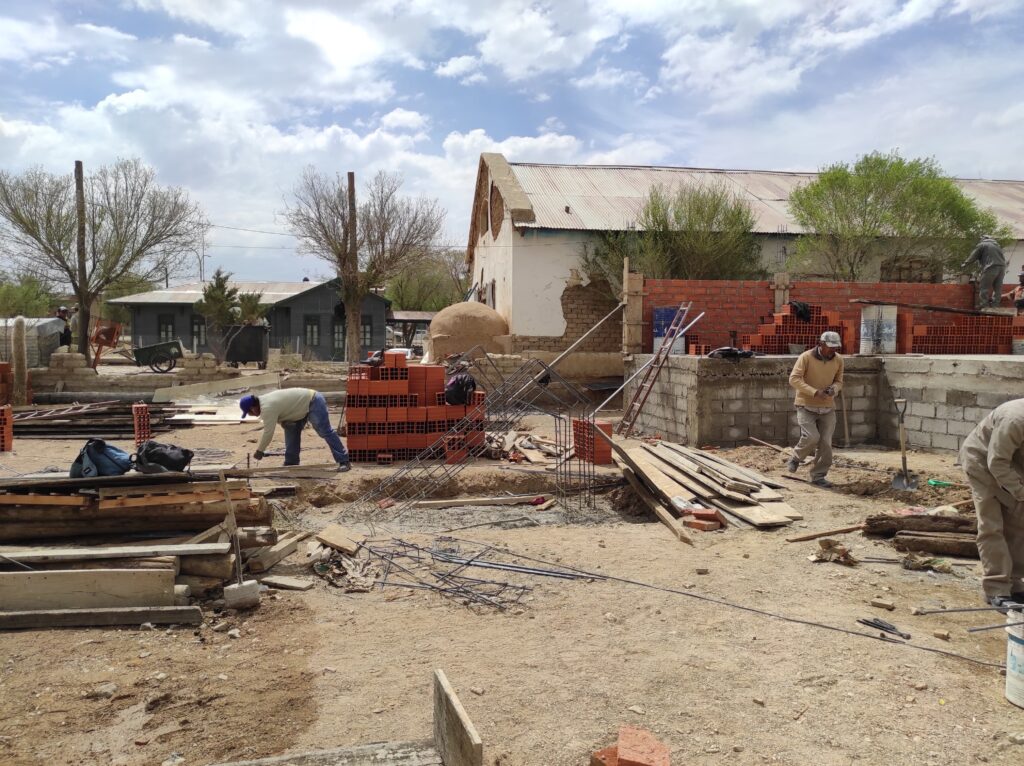 López, además, comentó: «En estos momentos, se está levantando la mampostería para hacer el muro que va a quedar como fondo del escenario, y a su vez, se están preparando los arcos, en el canchón municipal. Los dos arcos que van a cubrir 6 metros del escenario.»