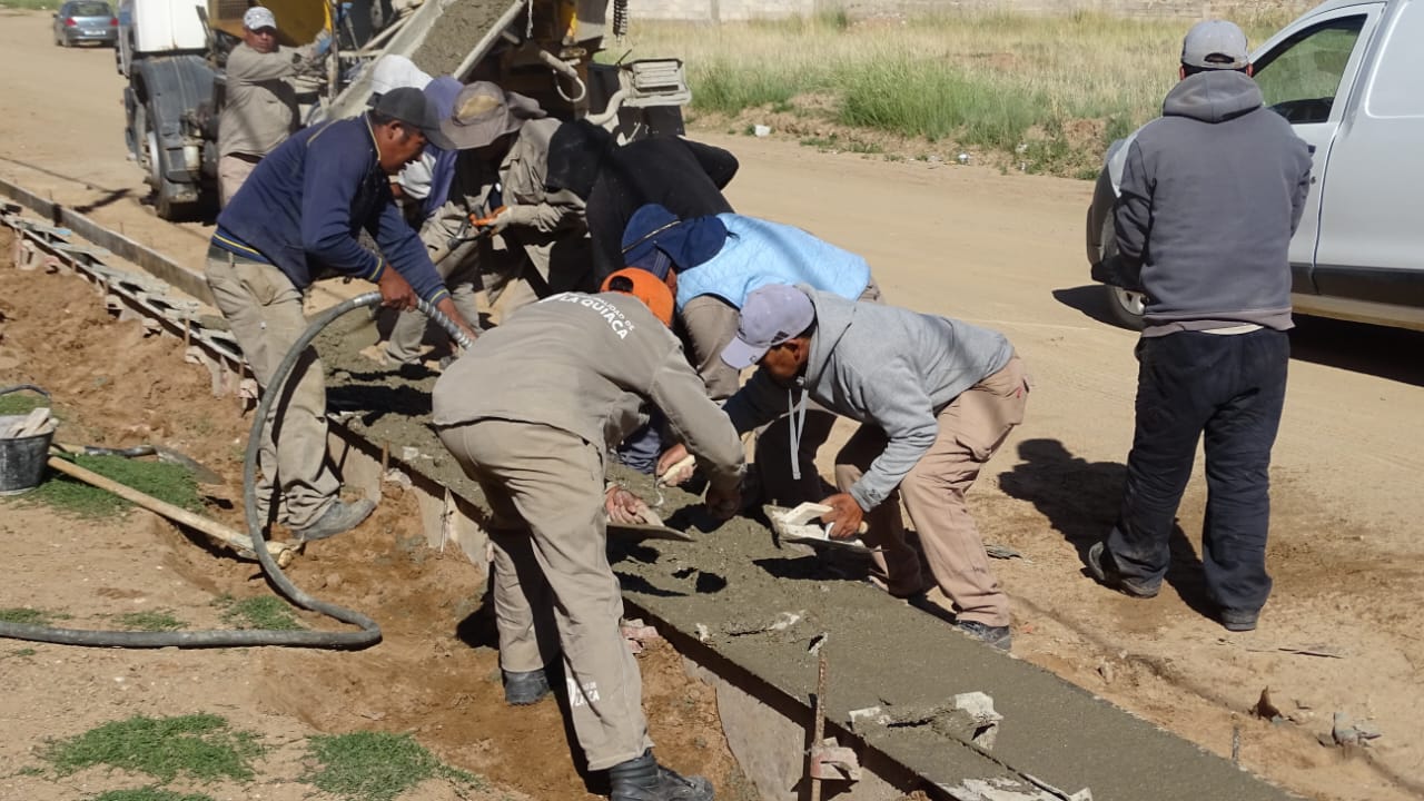 La Secretaría de Obras Públicas del Municipio de La Quiaca informó el avance de la etapa final del cordón cuneta en el barrio 20 de Junio, específicamente en el sector de calle Ejército del Norte, donde las tareas previstas se completarían durante la jornada.