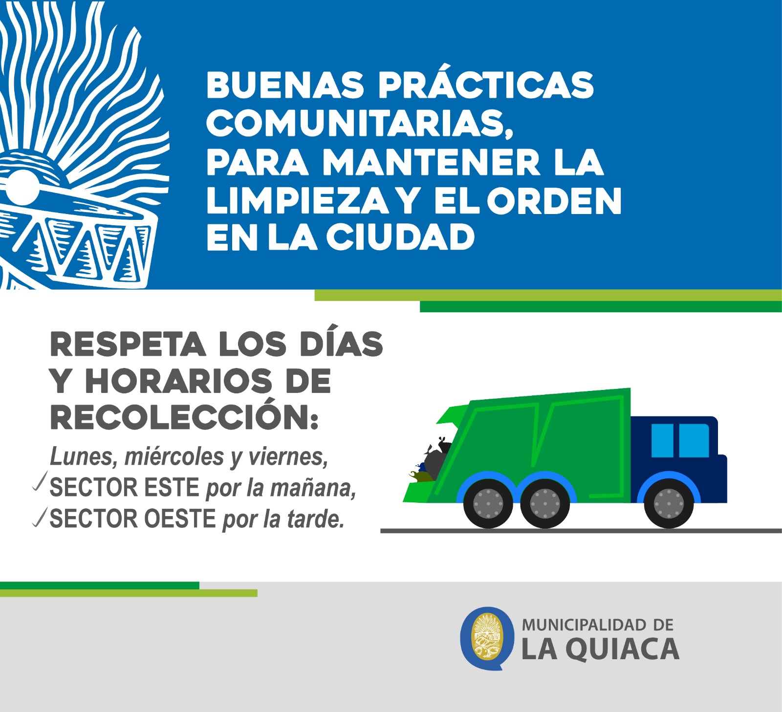 Asimismo, recordaron respetar los días y horarios establecidos para la recolección de residuos —lunes, miércoles y viernes— a fin de evitar acumulación de basura en la vía pública y optimizar el trabajo de limpieza.