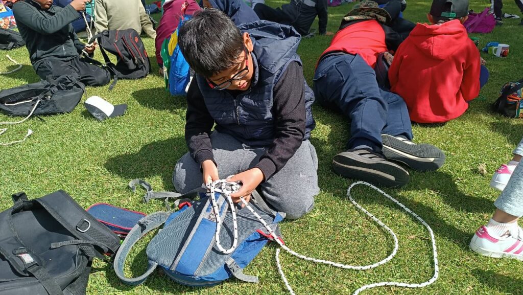 Otro de los ejes del taller fue el armado correcto de la mochila, un aspecto fundamental para el campamento. Durante la actividad se enseñó qué elementos llevar, cómo doblar la ropa, cómo organizar los utensilios y qué cosas evitar, ya que muchas veces los niños incorporan objetos innecesarios. Estas enseñanzas buscan fomentar la autonomía, el orden y la responsabilidad en cada uno de los participantes.