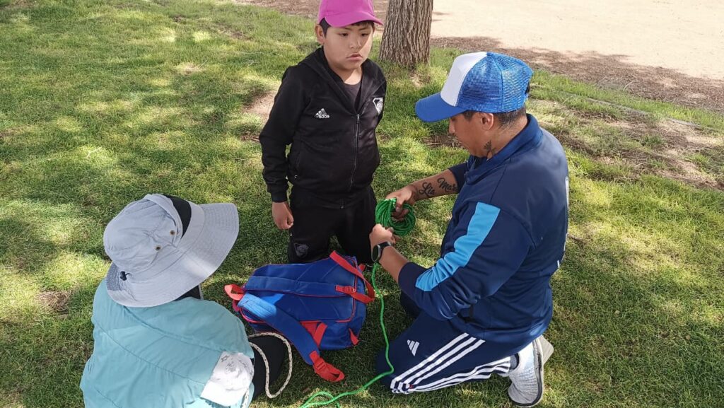 Además, se incorporaron ejercicios vinculados al armado de poleas y nociones básicas que luego se utilizarán en juegos y dinámicas como tirolesas, siempre adaptadas a la edad de los participantes. “Los chicos están muy entretenidos, concentrados y aprendiendo mientras juegan”, destacó el docente.