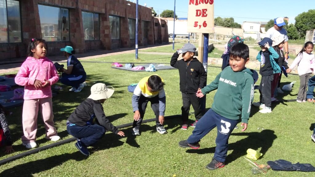 Los niños de 6 y 7 años participaron de juegos deportivos y predeportivos, mientras que los de 5 y 6 años realizaron juguetes con materiales reciclables, fomentando la creatividad y el cuidado del medio ambiente.