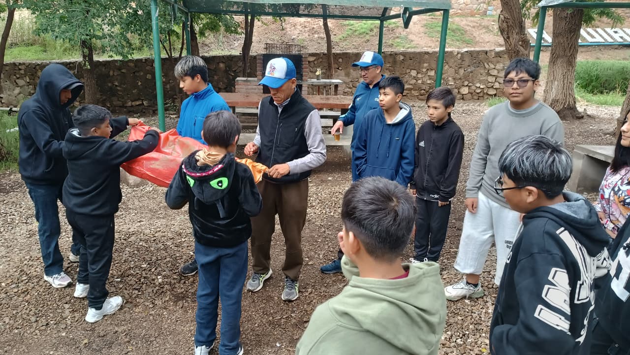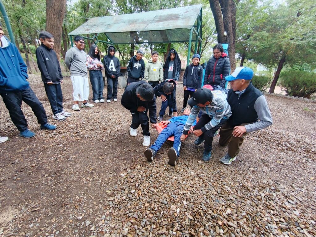 Durante el taller, los chicos participaron activamente de ejercicios prácticos, aprendiendo técnicas elementales de asistencia, traslado y contención ante un accidente. Se trabajó sobre la importancia de improvisar con elementos cotidianos cuando no se cuenta con equipamiento específico, utilizando prendas de vestir, cuerdas, bastones y bolsas para simular camillas de emergencia.